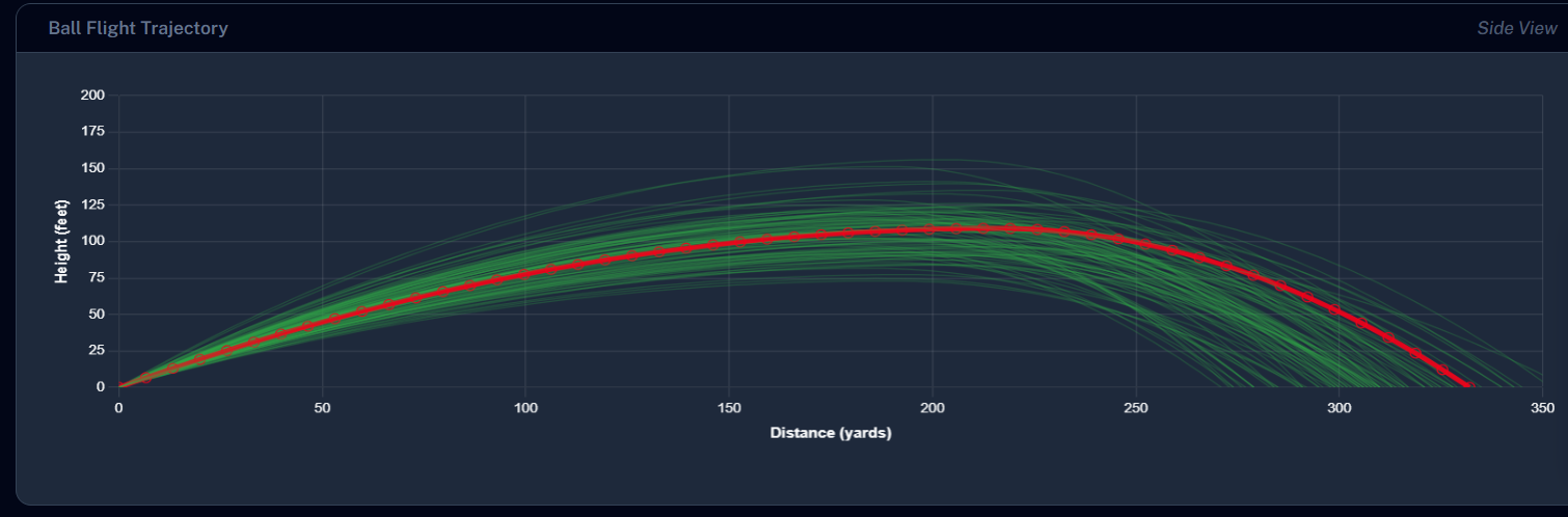 Basic Definition: This is the highest point of a golf ball's flight, it tells us how high a player hit the ball, or how low. Below is a visual from our Player Profiles for Scottie Scheffler's Driver. You can see there is about 20 ft of Deviation, but largely his Apex is 110 ft. When you hear Apex, think of the highest point a ball reaches before it begins to descend.
