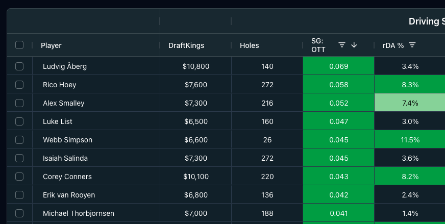 All of that is to say, I am more lenient on exactly pegging the studs in Approach or OTT, and okay as long as they have been doing 1 of those 2 well, and better yet if they have been either gaining considerable accuracy or distance OTT.